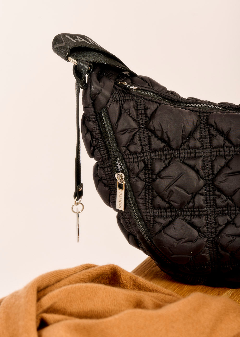 Diese schwarze Umhängetasche ist dein treuer Begleiter im Alltag und verbindet Funktionalität und Stil. Die edle Stepp-Optik verleiht ihr einen besonderen Charakter, während das zeitlose Schwarz jedem Outfit eine moderne, elegante Note schenkt.
