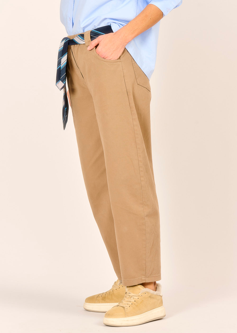 Diese lässige Chino besticht durch ihren entspannten Schnitt und das angenehme Material, das sie zum idealen Begleiter für moderne Alltagslooks macht. Der wahre Clou ist jedoch der originelle Gürtel: Eine Krawatte dient hier als stylischer Akzent und verleiht der Hose eine einzigartige, raffinierte Note. So wird aus einem Klassiker ein echtes Fashion-Statement, das spielerisch Eleganz und Lässigkeit miteinander verbindet.